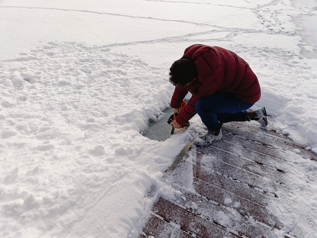 案内されたのは一面真っ白な雪原、そして湖は分厚い氷に閉ざされていました。
