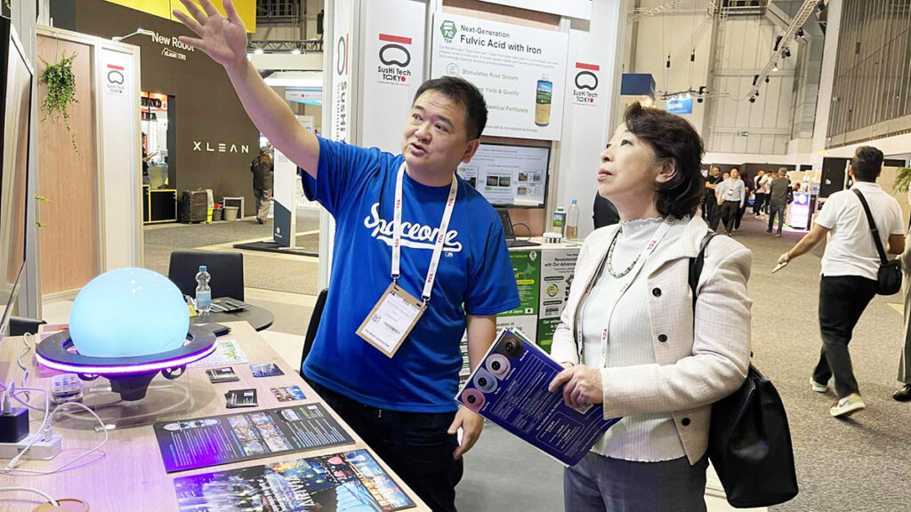 展示会は5日間、毎日10時から18時までの長丁場。東京都の「SusHi Tech Tokyo」ブースは立地も良く、人通りが多い場所にありました。