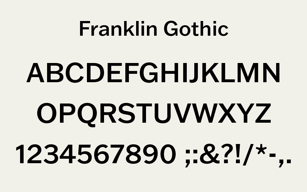 - Franklin Gothic(1902):アメリカの看板文化を象徴する力強さ