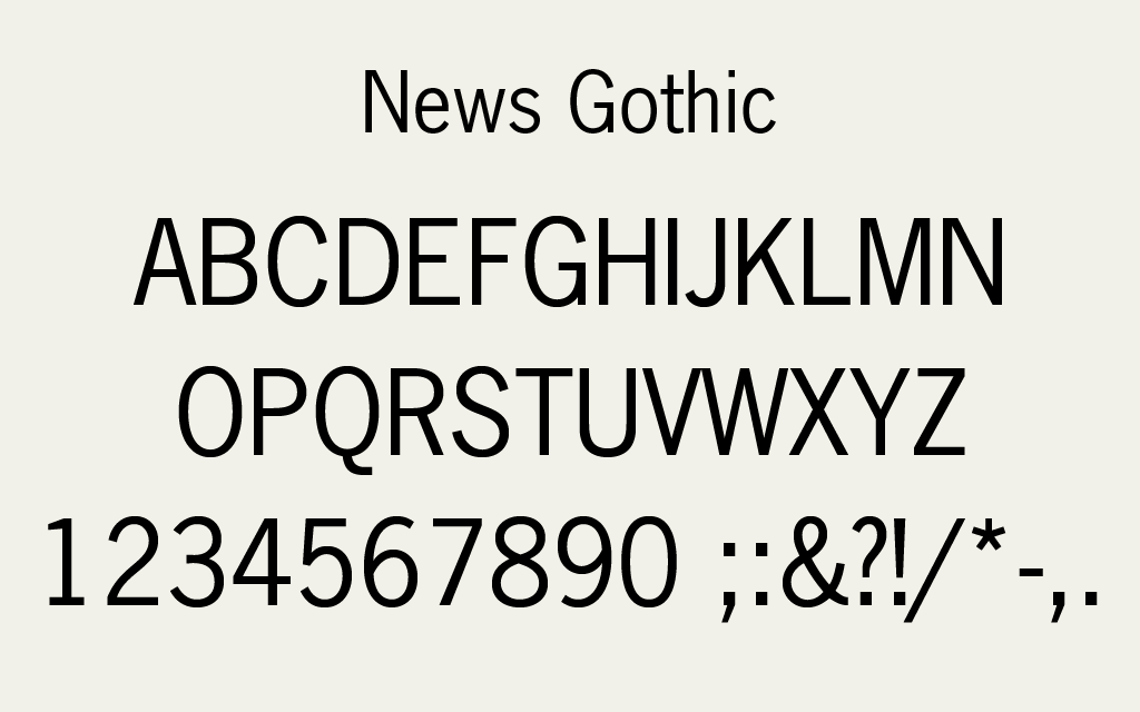 - News Gothic(1908):新聞印刷のための軽快な設計