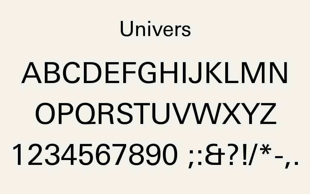 戦後、スイス・ドイツを中心に広がった「国際タイポグラフィ様式」の思想が色濃く、情報を素直に伝えるための文字。つまり、文字自体が語りすぎない文字といえます。