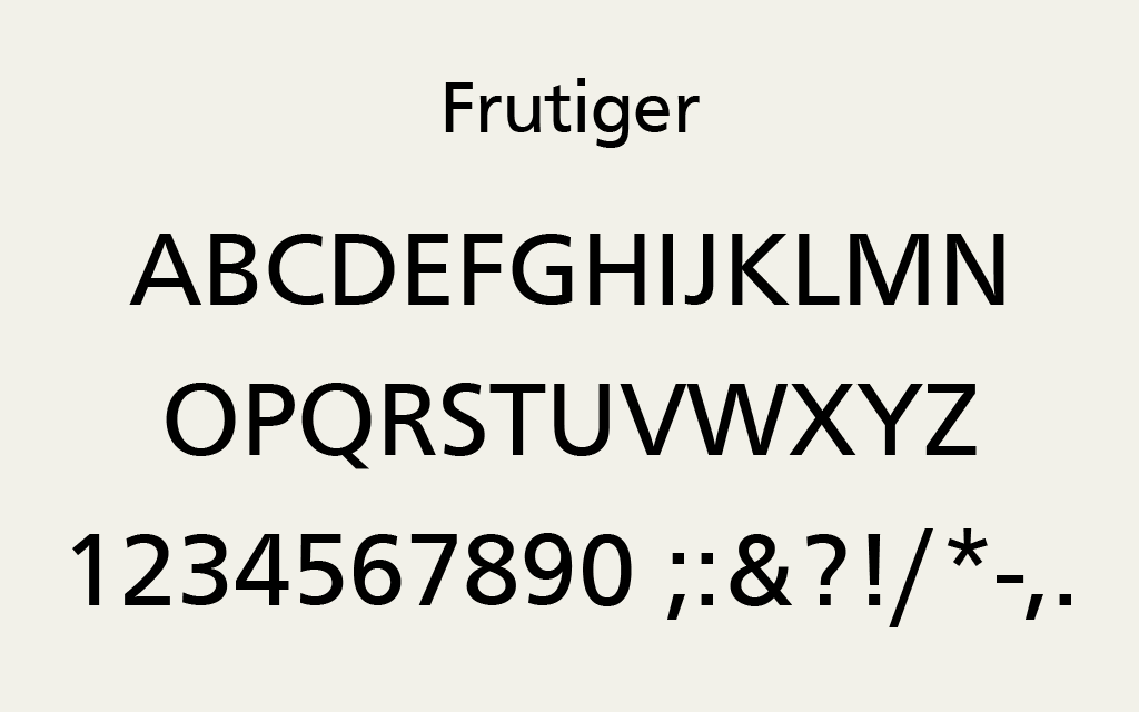 - Frutiger(1976):空港サイン用に設計された「距離に強い文字」