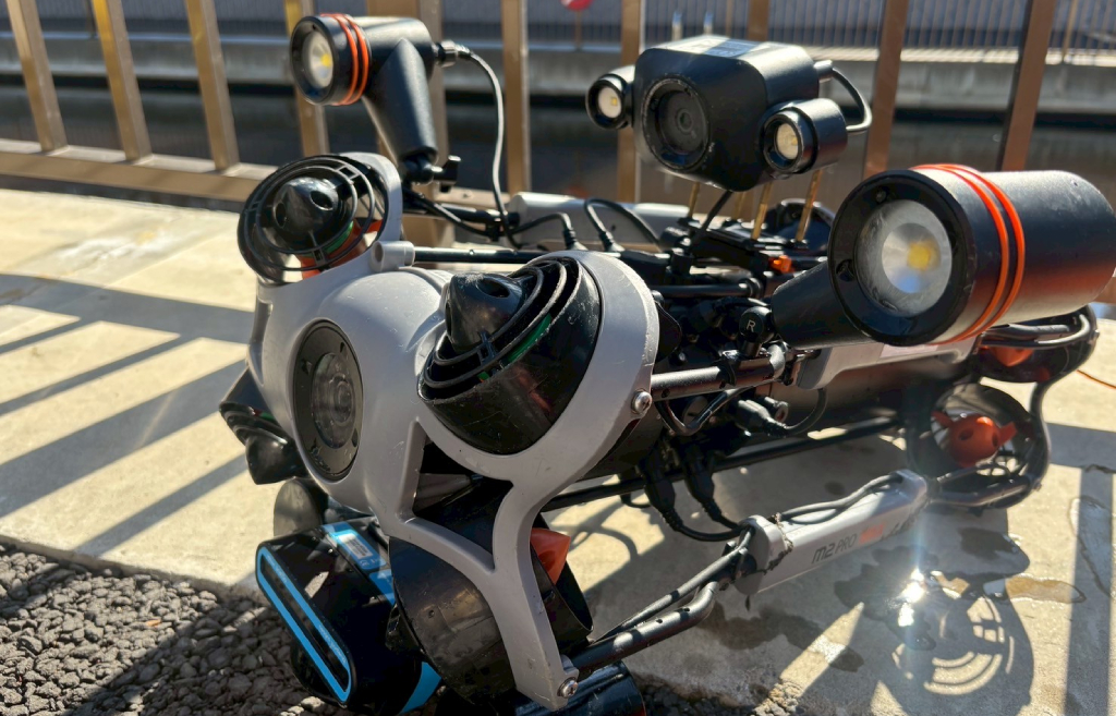 今回の現場では、CHASING M2 PRO MAXにUSBL(Ultra Short Baseline:水中測位装置)、マルチビームソナー、そして補助カメラという3種類のアタッチメントを装備して臨みました。