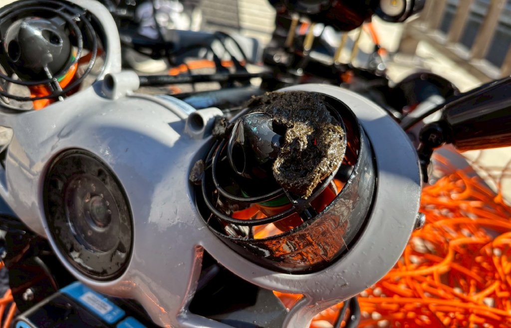 上長はすぐさまスラスターを止め、機体を引き上げました。そこには、スラスターに絡まった藻がありました。