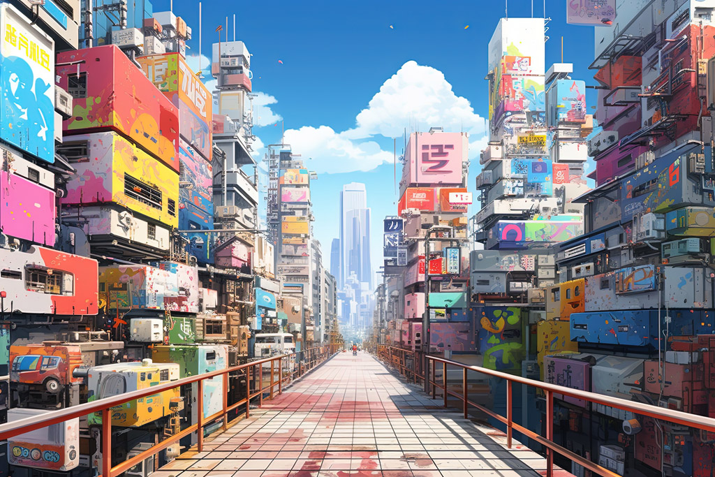 6.コントラストがはっきりしたカラフルな街並みのイラスト