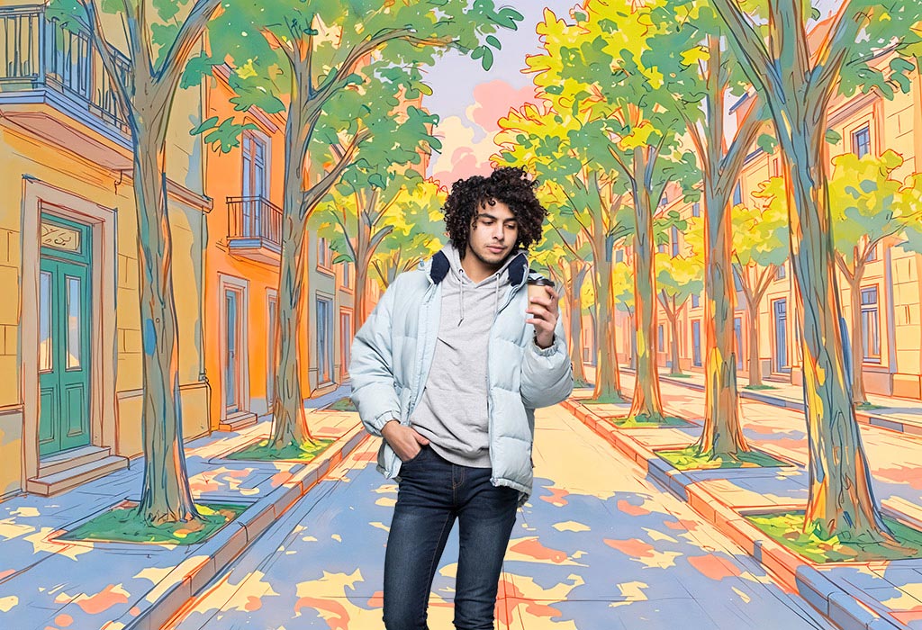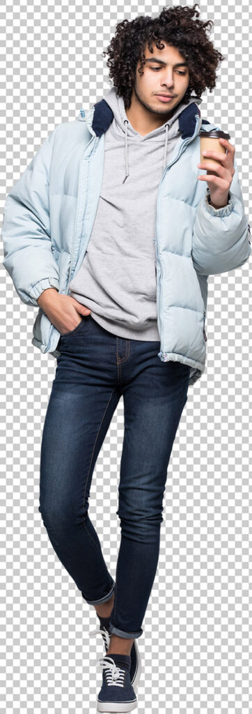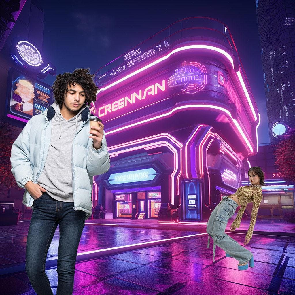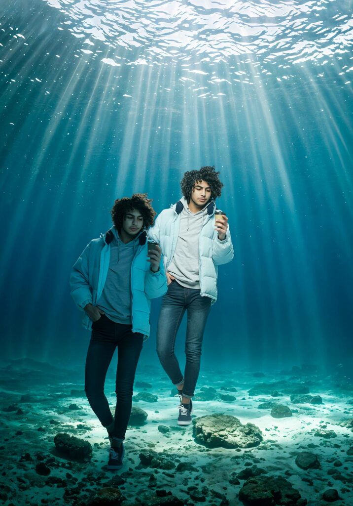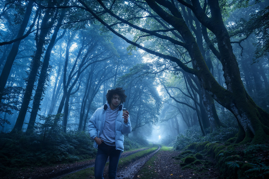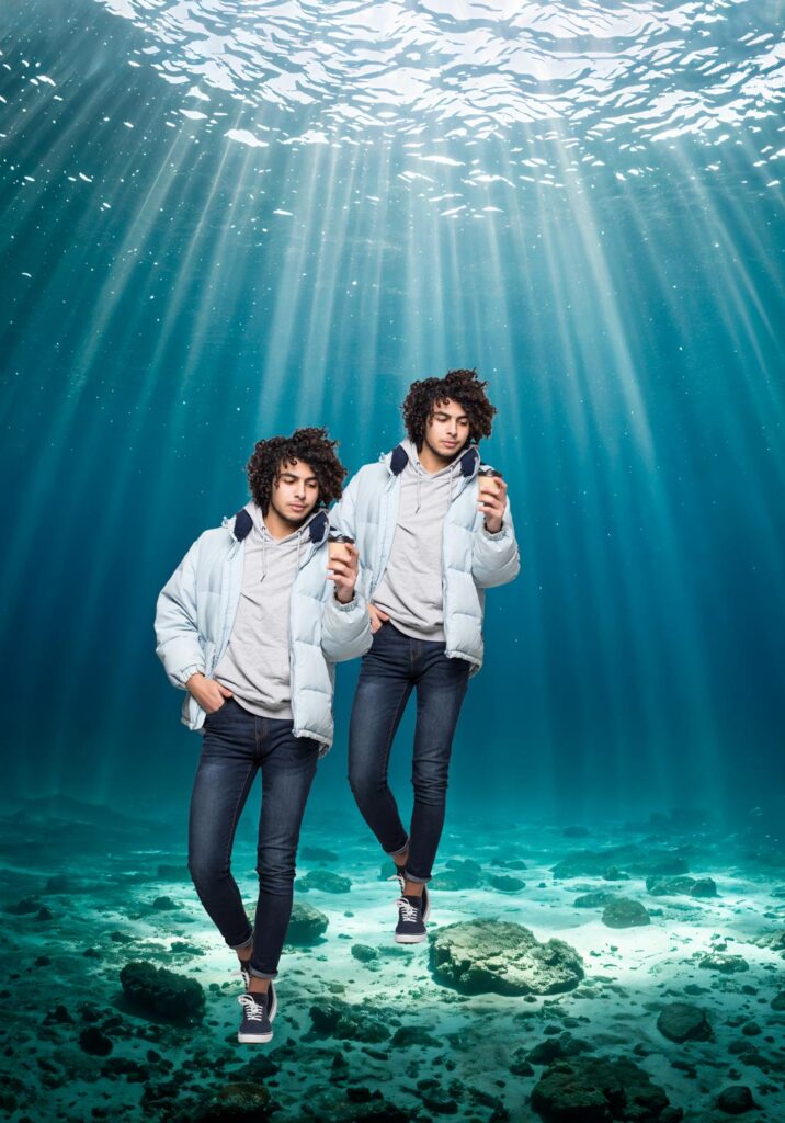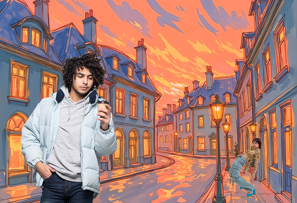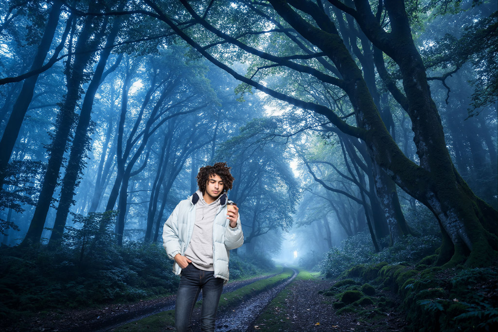 全体的に男性が青っぽく調整され、ジャケットには少しオレンジの光を感じさせる加工となっている。後ろの女性も気付かないくらいなじんでいる。