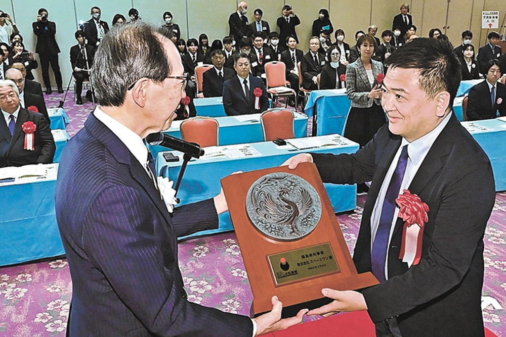 第11回ふくしま産業賞にて福島県の内堀知事より賞状と盾を授与