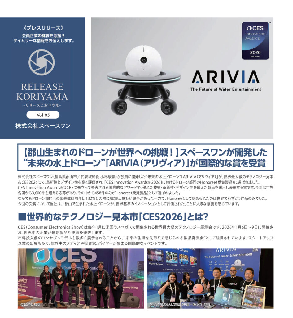 郡山商工会議所 会報(1月号)にARIVIAが紹介されました
